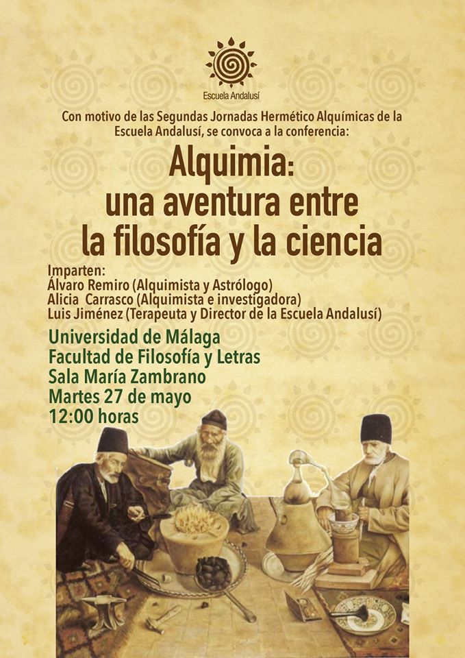 Ayer día 27 de mayo se inauguró de forma simbólica el previo de las Segundas Jornadas Hermético – Alquímicas de la Escuela Andalusí con una conferencia celebrada en la sala María Zambrano de la facultad de Filosofía y Letras de la Universidad de Málaga.